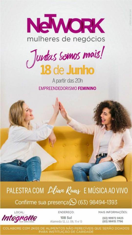 Mulheres que fazem parte do Projeto Mulheres de Negócios em Palmas, novamente se reunirão nesta segunda-feira, 18, no Instituto Integralle da capital, onde juntamente com outras mulheres do empreendedorismo feminino do Estado participarão de Network.