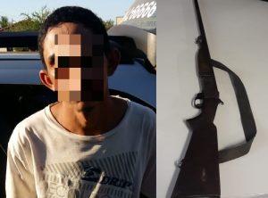 Diante dos fatos, a Polícia Militar deu-lhe voz de prisão e o conduziu juntamente com a espingarda e com a substância entorpecente para DP de Plantão, onde foi devidamente autuado por porte ilegal de arma de fogo e responderá também pela resistência contra sua prisão, pela posse das drogas e também pela ameaça. Ele já tinha passagem pela polícia por ameaça.