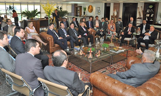 O governador do Estado do Tocantins, Mauro Carlesse e o vice Wanderlei Barbosa, receberam na manhã desta sexta-feira, 14, no  Palácio Araguaia, defensores públicos-gerais e outros representantes de Defensorias Públicas de 18 estados brasileiros.