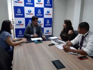 Melhorias no serviço de telefonia no Tocantins e as principais reclamações dos consumidores, foram discutidas durante reunião com o superintendente do Procon Tocantins, Walter Viana; a gerente de Atendimento e Educação para o Consumo, Nara Rúbia; analista de relacionamento da operadora Vivo, Elisabet Marcelino Martins e o gerente de negócios, Luiz Felipe Mendes, na manhã desta segunda-feira, 24.