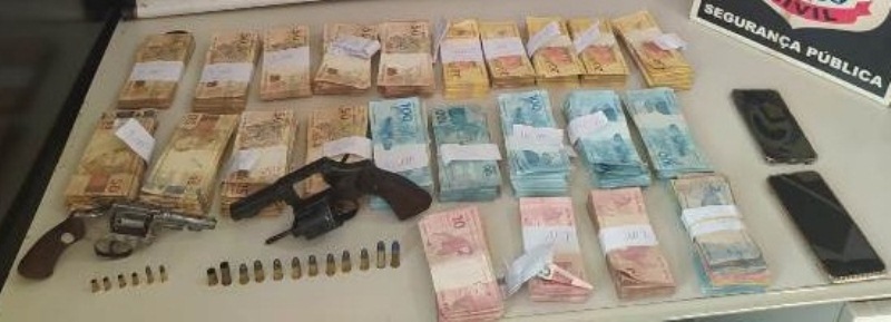 Os autores e todo o dinheiro recuperado foi juntamente com as armas; munições; a motocicleta e dois aparelhos celulares apresentados na Delegacia de Polícia Civil local, onde foram autuados pelo delegado de plantão.