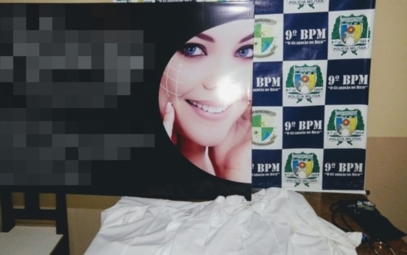 Além desses dois documentos, os policiais militares apreenderam também, jalecos de enfermeiro, carimbo, medidor de pressão arterial e um banner, com anúncio dos serviços estéticos oferecidos.