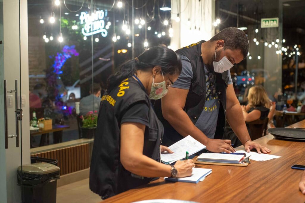 Durante passagem pela quadra 101 Sul, os fiscais autuaram e fecharam um restaurante até que fosse providenciada a regularização da documentação. No momento da abordagem, cerca de 150 pessoas permaneciam no espaço que ainda contava com show de música ao vivo, o que não é permitido.