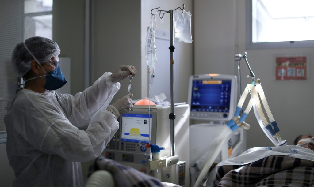 Profissional de saúde trata paciente com Covid em UTI — Foto: Amanda Perobelli/Reuters