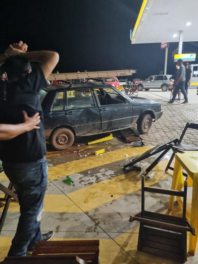 Questionado, ele relatou que foi engatar a marcha ré, mas acabou colocando a primeira marcha acabou indo pra frente. Revoltadas, as pessoas que estavam no local alegaram que o motorista poderia estar embriagado e tentaram agredi-lo. Por segurança, o homem foi colocado na viatura policial.