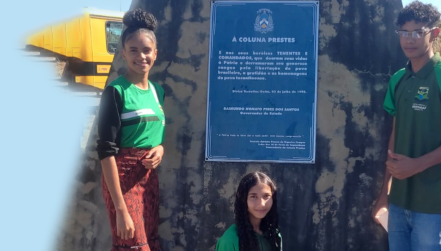 O monumento é uma obra do arquiteto Oscar Niemeyer e foi construído em 1998 e está localizado na TO-050, na divisa do Tocantins com Goiás. De acordo com a diretora da escola, Denize Cristina Nunes, esse ponto histórico fica próximo da unidade de ensino. “Então, decidimos cuidar melhor desse espaço, fizemos a limpeza e cuidamos de sua conservação. E essa visita promoveu uma reflexão sobre os dois aspectos históricos: o trabalho desenvolvido por Oscar Niemeyer e a passagem da Coluna Prestes”, frisou.
