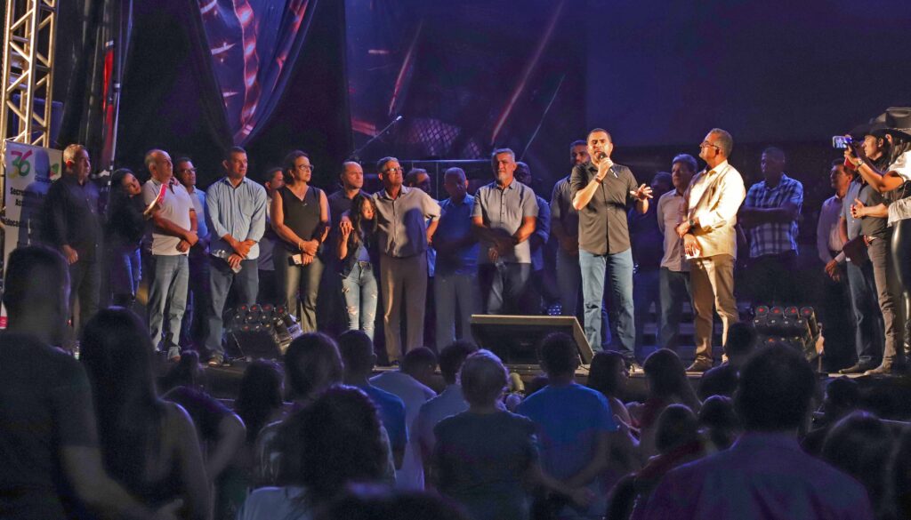 Ao lado do prefeito de Nova Rosalândia, Enoque Portílio, o governador parabenizou os novarosalandenses e reafirmou o compromisso em ajudar a realizar obras que contribuirão para a melhoria da qualidade de vida da comunidade. “Vim parabenizar essa comunidade amiga de Nova Rosalândia e dizer a ela que o presente está garantido. Quero reforçar ao prefeito o apoio do Governo do Tocantins, e vamos destinar R$ 1,1 milhão para fazer asfalto, que é importante para a infraestrutura dessa cidade, assim como é importante essa festa linda, que também fizemos questão de ajudar com recursos para as apresentações culturais. É isso que nós queremos fazer, dar ao nosso povo alegria, motivação, elevar a autoestima para que o Tocantins seja um estado de progresso, de prosperidade”, ressaltou o Governador.