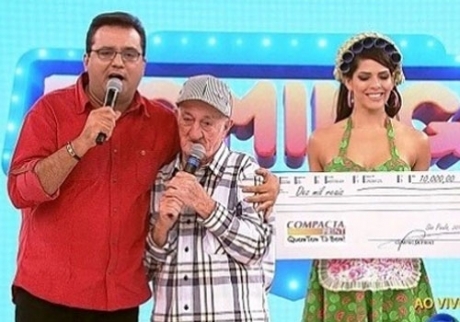Um mês após participação no Domingo Show, o ex-assistente de palco Russo, 83 anos, ainda não recebeu da Record o prêmio prometido no ar pelo programa de Geraldo Luís: R$ 10 mil em dinheiro e uma máquina de estampar camisetas. Antônio Pedro de Souza e Silva, o Russo, também reclama de ter sido usado pela Record para atacar a Globo, que o afastou do trabalho em abril por causa da idade avançada e de problemas de saúde.