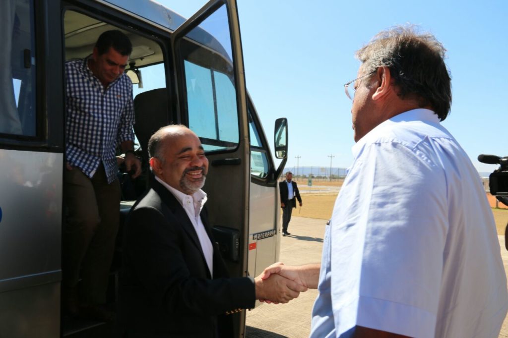 O governador Marcelo Miranda recebeu, na manhã desta terça-feira, dia 28, o ministro do Esporte, George Hilton, no aeroporto de Palmas. Em seguida, o ministro, o chefe do Executivo estadual e demais autoridades visitam o canteiro de obras da primeira edição dos Jogos Mundiais Indígenas, que acontecerá este ano, na Capital.