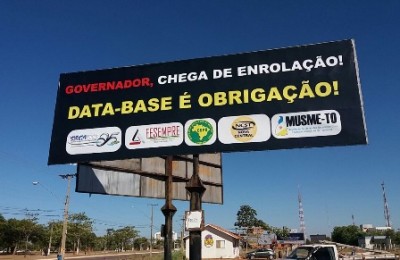 A mobilização organizada pelo Sindicato dos Servidores Públicos no Estado do Tocantins (SISEPE-TO) para cobrar o pagamento da data-base dos servidores públicos estaduais ganhou reforço esta semana. Dezenas de outdoors foram espalhadas pelos principais pontos de Palmas com frases de impacto que esclarecerem que a data-base é apenas a reposição das perdas salariais tidas com a inflação. Além dos outdoors também estão acontecendo ações de mobilização no interior, com reuniões nos órgãos estaduais e adesivagem de carros dos servidores.