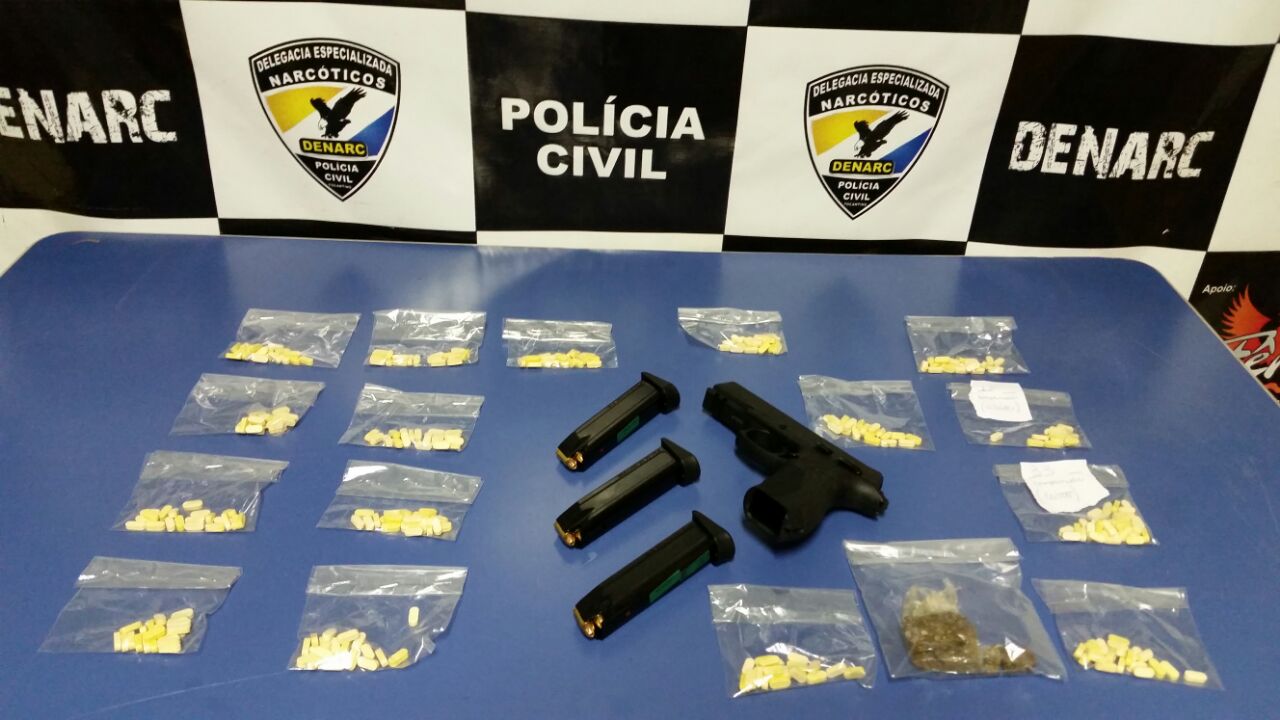 Ainda segundo Guilherme Rocha, o suspeito foi abordado pela Denarc portando vários comprimidos da droga dentro da meia, além de uma arma de fogo, calibre 380. “Em seu veículo, a Polícia civil encontrou dezenas de comprimidos de ecstasy, e, após dirigirmos à sua casa, apreendemos outros 300 comprimidos da droga. Cada um desses comprimidos era vendido a 50 reais”, completa o delegado.