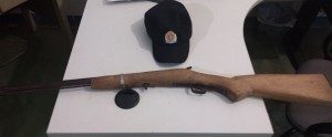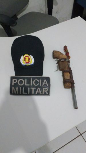 Após atender a uma solicitação de lesão corporal no setor Chapadinha I, onde um suspeito de 19 anos, agrediu a uma senhora e evadiu do local, os policiais militares, de posse das características do suspeito realizaram patrulhamento nas proximidades e o localizaram. O envolvido estava com uma mochila, e dentro havia uma arma de fogo de fabricação caseira, tipo bate bucha.