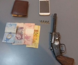 De posse das características do suspeito de 21 anos, o mesmo foi abordado e estava em posse de um revólver calibre 38 na cintura, municiado com 06 munições, sendo cinco intactas e uma deflagrada.