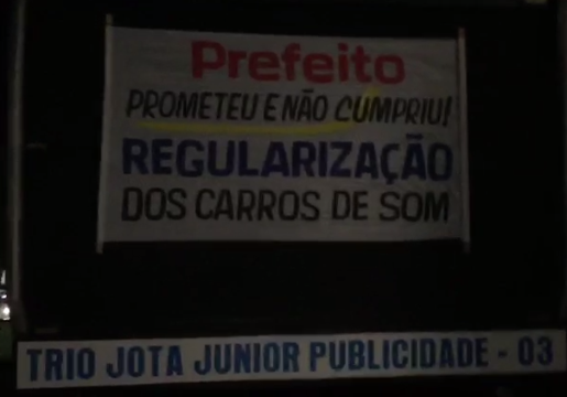 Segundo eles, existem vereadores de Palmas que possuem carros de som e trios elétricos e que atuam sem qualquer pudor, desrespeitando as regulamentações dos profissionais da área. E que qualquer loja, pessoa jurídica ou física manipulam aparelhos de som em veículos ou estacionado sem respeitar as regras de sonorização.