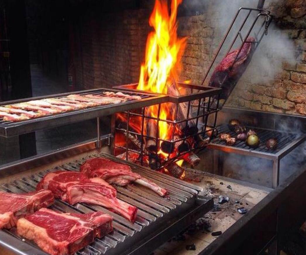 - Parrilha (Picanha, ancho, fraldinha, contrafilé), Brisket defumado, Assado de Tira, Maminha e Bombom da Alcatra;