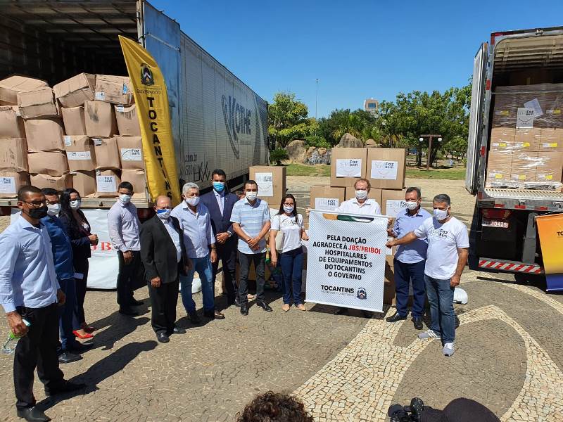 O governador do Estado do Tocantins, Mauro Carlesse, acompanhado do vice-governador Wanderlei Barbosa, recebeu 450 mil unidades de Equipamentos de Proteção Individual (EPIs) da empresa JBS, nesta segunda-feira, 6, os itens serão utilizados nas ações de combate à pandemia do novo Coronavírus. A entrega faz parte do projeto Fazer o Bem Faz Bem – Alimentando o Mundo com Solidariedade, que contemplou o Tocantins com R$ 12 milhões em materiais e insumos, sendo R$ 10 milhões para o Estado e R$ 2 milhões para municípios tocantinenses.