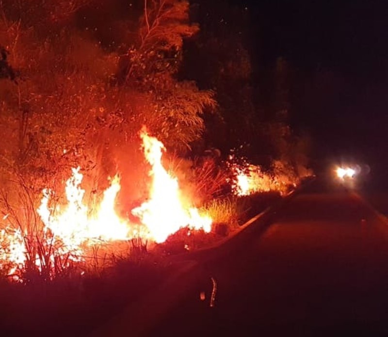 Dois suspeitos conseguiram fugir pela mata após avistarem a chegada da viatura, mas o jovem de 23 anos acabou sendo detido. Ele disse que os outros dois homens que fugiram eram seus parentes – tio e primo – e que todos estavam ateando fogo na mata para evitar incêndios em propriedades vizinhas.