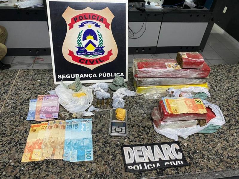 A Polícia Civil do Tocantins prendeu nesta sexta-feira, 24, duas pessoas em flagrante por envolvimento com tráfico de drogas em Araguaína, norte do Tocantins. A ação policial foi coordenada pelo delegado José Anchieta e, segundo ele, as investigações apontaram que duas mulheres e um homem traficavam drogas em Araguaína e que a remeteriam para Nova Olinda.