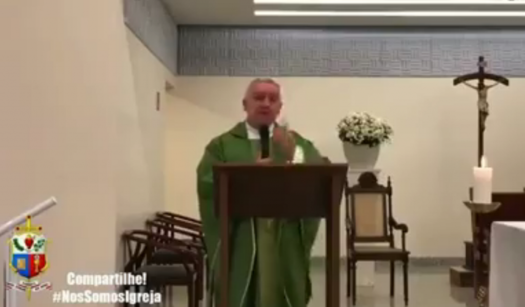 Em um vídeo que viralizou na internet neste domingo, 05, o padre Edson Adélio Tagliaferro, da Igreja Matriz Nossa Senhora das Dores, no interior de São Paulo, durante uma missa chama Bolsonaro de bandido, e diz que quem votou no atual presidente da República deveria se confessar pelo pecado que cometeu.