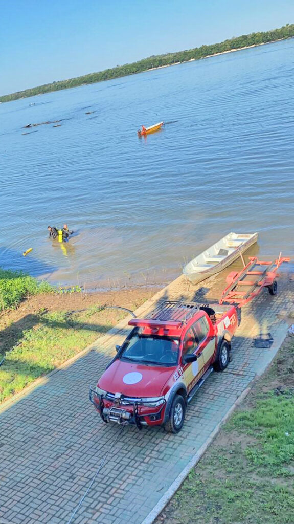 Uma equipe de mergulhadores foi acionada para a segunda etapa do trabalho, para buscas mais detalhadas nas partes profundas do rio, executando varreduras apropriadas para aquele ambiente. Conforme os bombeiros militares, o local apresentava visibilidade razoável, profundidade variável entre 03 e 05 metros e água parada.