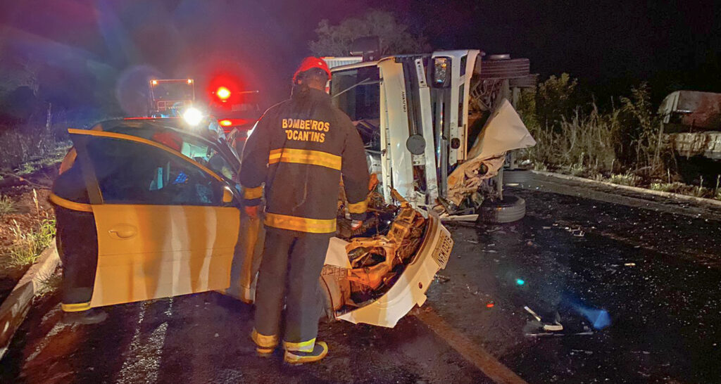 No início da noite desta segunda-feira, 25, militares da 2ª Companhia de Bombeiros Militar, em Colinas, (2º Batalhão – Araguaína), realizaram o desencarceramento de um homem que morreu após o carro em que estava colidir de frente com um caminhão baú, na BR-153. O acidente envolveu dois caminhões e um carro de passeio, e aconteceu por volta das 19h, há cerca de 5km depois do município de Brasilândia, no sentido Palmas, região norte do Tocantins.