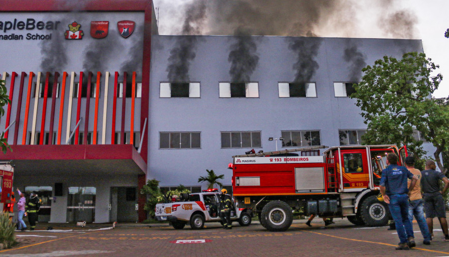 Um total de 55 bombeiros militares atuou no combate ao incêndio no prédio da Escola Maple Bear, nesta quarta-feira, 26, em Palmas. O fogo começou próximo às 18h, e deixou destruída parte do terceiro piso. A instituição de ensino está em recesso escolar e, por isso, havia apenas algumas pessoas no local. Não houve vítimas.