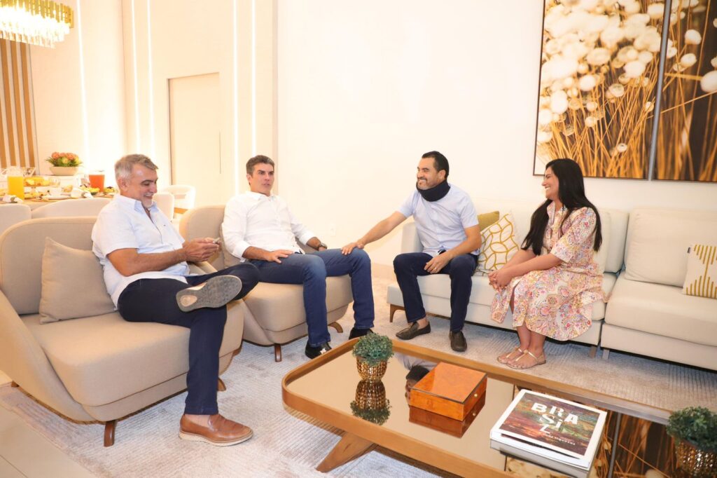 Acompanhado da esposa, Karynne Sotero, o governador Wanderlei Barbosa, recebeu em sua residência em Palmas, na noite desta segunda-feira, 08, o governador do Pará e presidente do Consórcio Interestadual de Desenvolvimento Sustentável da Amazônia, Helder Barbalho. O encontro também contou com a presença do presidente da Assembleia Legislativa, deputado Amélio Cayres.