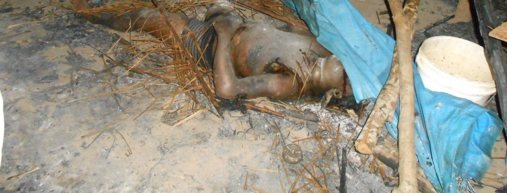 Revoltado pela violência que sofrera a mulher dele, abusada sexualmente pelo tarado, o marido se apoderou de uma espingarda tipo “por fora”, dispara um único tiro na testa do acusado, corta pinto e escroto do rapaz, pendura a genitália numa ponte e incendeia a casa com o tarado morto em seu interior.