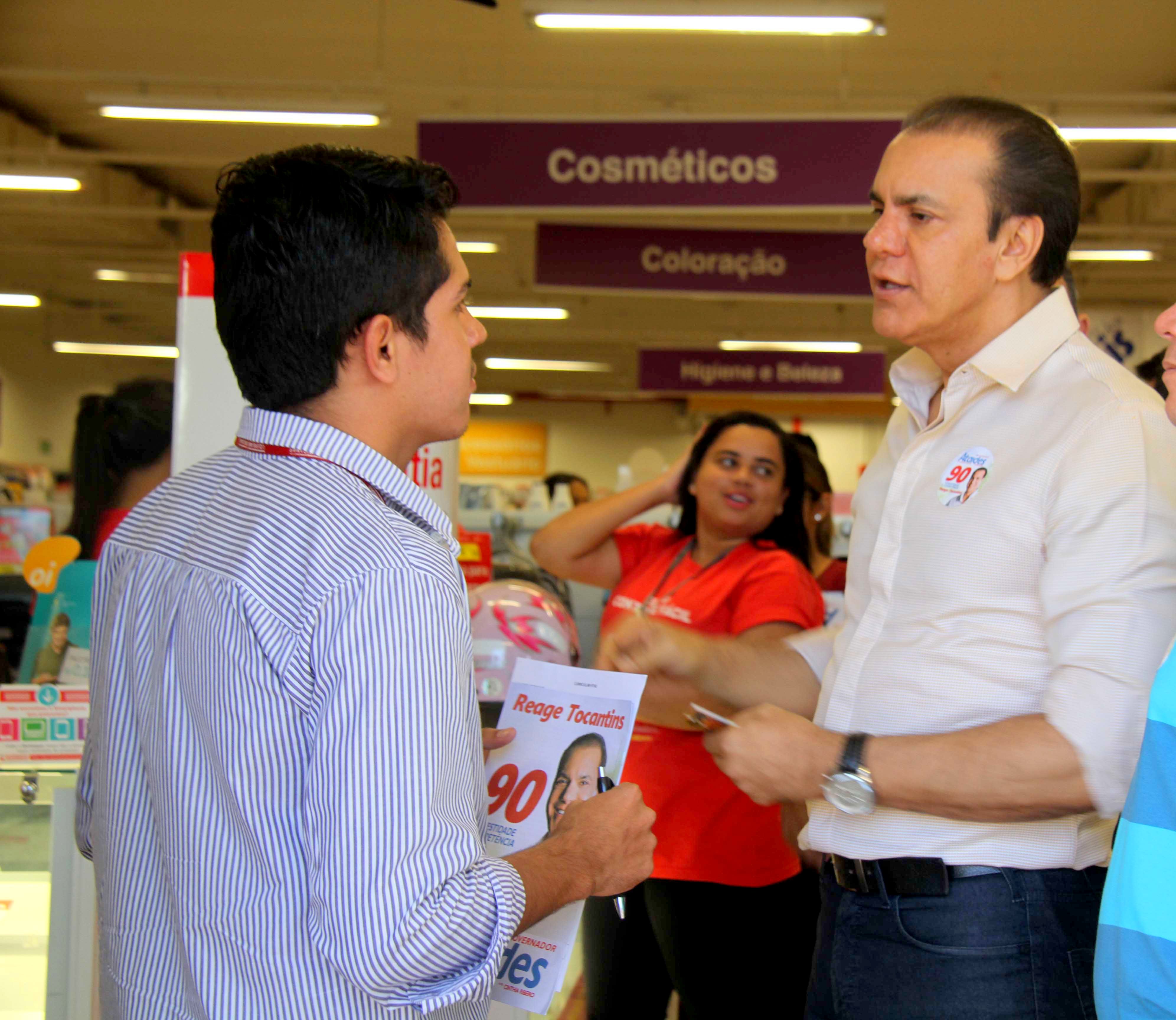 “O jovem hoje no Tocantins não tem perspectivas na iniciativa privada e se esforça muito para passar em concurso público. Por isso, precisamos atrair indústria e grandes empresas e incentivar as que estão instaladas. Assim vamos garantir a geração de mais emprego, inclusive para os mais jovens”, afirmou Ataídes ao conversar com um jovem trabalhador.
