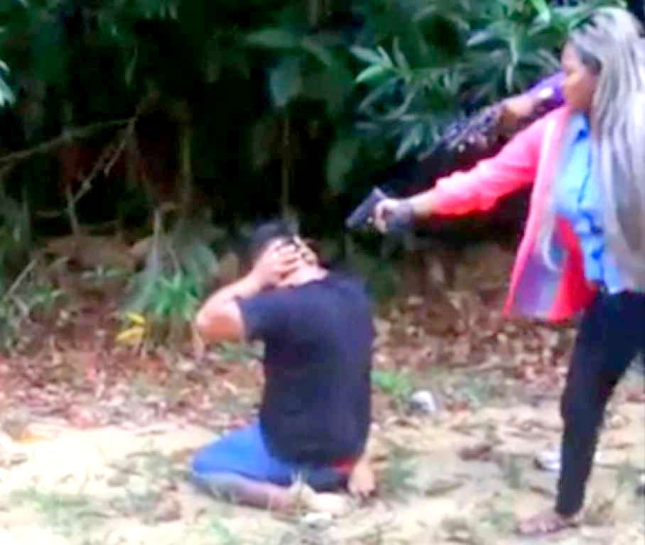 As imagens mostram a vítima de joelhos e com as mãos na cabeça. Luciana estava acompanhada de um outro homem. A arma dela falha duas vezes antes do primeiro disparo na cabeça. O outro envolvido ainda dispara pelo menos mais duas vezes.