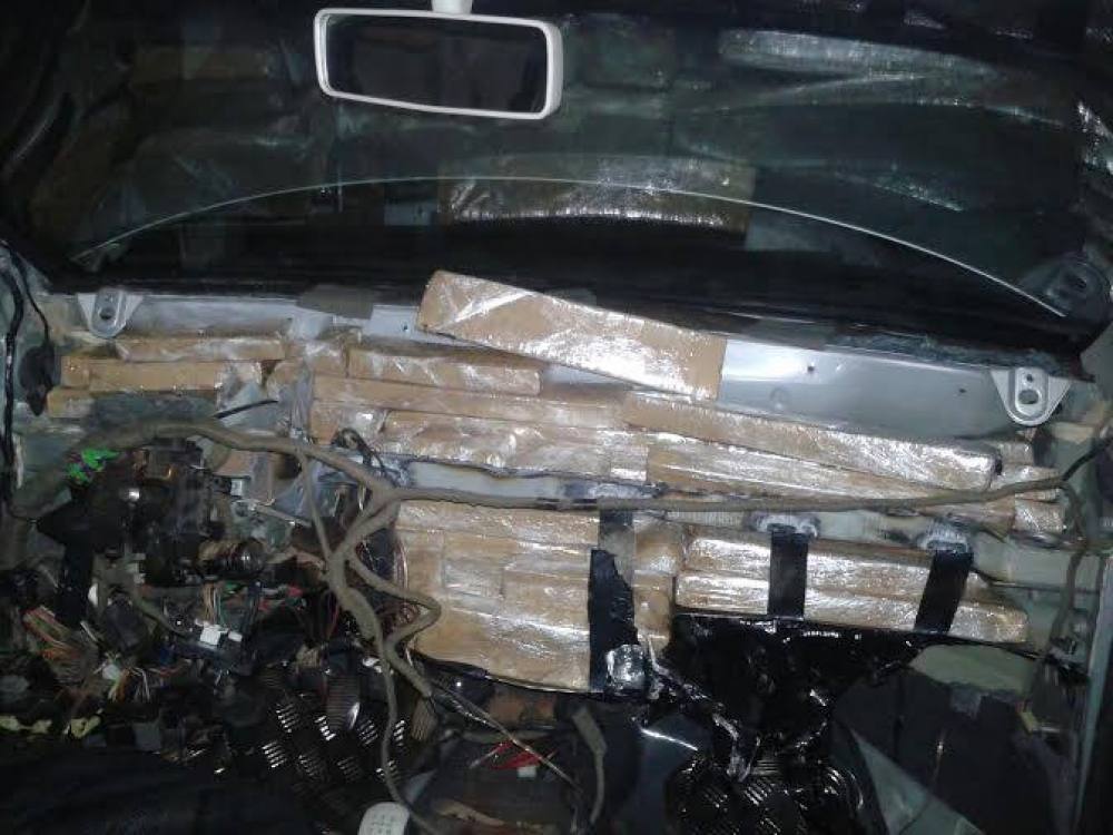 Após minuciosa busca, os policiais constataram que no painel do veículo abordado tinha um fundo falso, que na linguagem criminal denomina-se “mocó”, sendo este desmontado por policias que encontraram 78 (setenta e oito) tabletes de maconha, totalizando aproximadamente 61 quilos da droga.