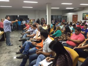 “Batam na porta, uma a uma e diga para o eleitor porque você quer ser vereador dessa cidade, conte porque você quer reeleger o Amastha, mostre o que a gente fez nesses quatro anos e mostre o que a gente vai fazer nos próximos quatro e garanta seu voto.” Ressaltou o prefeito e candidato à reeleição Carlos Amastha (PSB) durante reunião com os 87 candidatos a vereador que compõem a coligação “Palmas bem cuidada” formada pelos partidos PSB, PSL, PCdoB, PRP, PTC, PMN, PTB e PSDB. A reunião aconteceu na noite desta quinta-feira, 12, na Câmara Municipal de Palmas e contou com a participação da candidata à vice, Cínthia Ribeiro, que reiterou seu desejo de ver mais mulheres ocupando as cadeiras do legislativo.