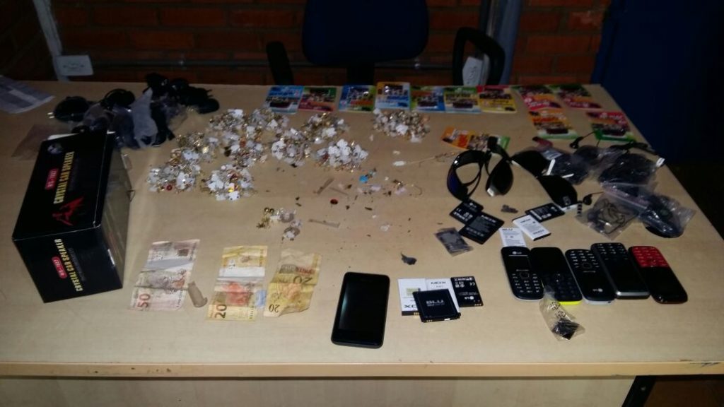Policiais militares prenderam nesta quinta-feira, 18, três acusados de furto a uma relojoaria no município de Pau D’Arco. Com os autores foi apreendida uma mochila contendo diversas joias, óculos de sol, celulares, dinheiro, pendrives, dentre outros objetos produto do furto.