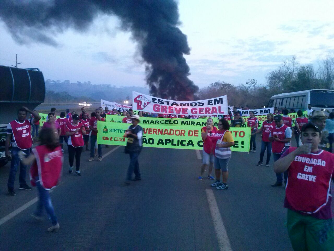 O trânsito foi bloqueado impedindo a passagens de carros e ônibus. Os manifestantes são profissionais do quadro geral, da saúde, educação, cirurgiões dentistas, médicos, enfermagem e auditores fiscais.