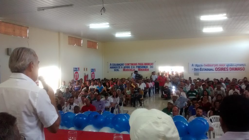 A maratona de convenções do dia encerrou no município de Pugmil, onde apenas o deputado Paulo Mourão participou acompanhado do presidente da ATS, Edinho Fernandes, que também é presidente do PMDB de Gurupi, representando o governador Marcelo Miranda (PMDB). A prefeita Arlene Martins (PMDB) confirmou sua pré-candidatura com o vice, o vereador Ângelo Mário (PMDB). Paulo Mourão lembrou que a prefeita Arlene passou a ter apoio do governo apenas nos últimos dois anos, com a eleição do governador Marcelo Miranda, pois antes o governo era de oposição. Destacou também que neste período esteve em Pugmil diversas vezes para lançamento e inauguração de obras, sendo importante dar continuidade à sua gestão. “Se tem um Governador do partido da prefeita que a apoia não tem porque trocar, será que Pugmil vai avançar se fizer isso ou dará uma marcha ré”, questionou. “Se a prefeita não fez mais do que fez, foi por falta de apoio”, ponderou. “Quero trabalhar com a Arlene prefeita”, afirmou Mourão se colocando à disposição para participar da campanha no município.