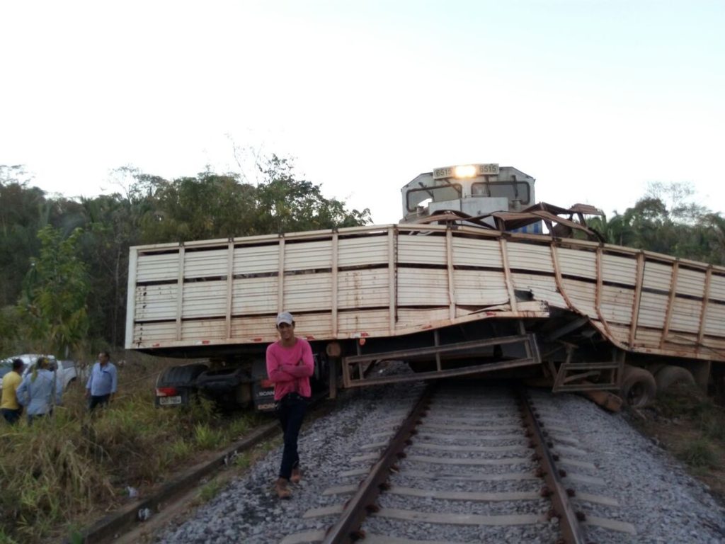 Um trem e uma carreta carregada de gado se envolveram em um acidente em uma passagem de nível da Ferrovia Norte-Sul, em uma estrada vicinal na zona rural de Miracema do Tocantins.
