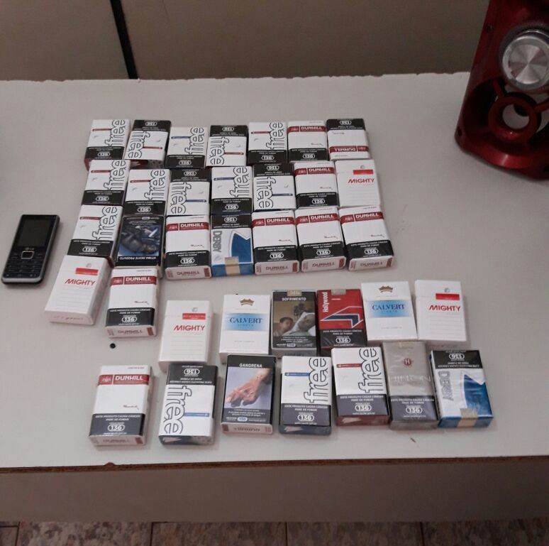 Em diligências, os militares localizaram um menor de idade, suspeito, que estava em posse de cigarros, uma TV Led, uma caixa de som e de um celular. Ele confessou a autoria do furto e ainda apontou onde estaria seu comparsa, que também foi localizado pela PM. Com este havia 13 carteiras de cigarros.