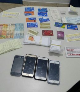 Durante a abordagem, os policiais civis encontraram em poder dos suspeitos vários cartões bancários, talões de cheques e demais objetos de origem duvidosa pertencentes às vítimas.