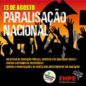 A mobilização convocada pela Confederação Nacional dos Trabalhadores em Educação (CNTE), em conjunto com entidades sindicais e movimentos sociais realizará atos nas 27 capitais, no Distrito Federal, além de cidades do interior por todo o país.