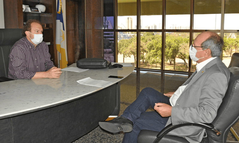 O governador do Estado do Tocantins, Mauro Carlesse, promoveu nesta sexta-feira, 28, mais um encontro para reforçar as parcerias no combate à pandemia do novo Coronavírus. Em reunião no Palácio Araguaia, o Chefe do Executivo recebeu o prefeito de Araguaína, Ronaldo Dimas, que solicitou apoio para a construção do hospital municipal de campanha da cidade.