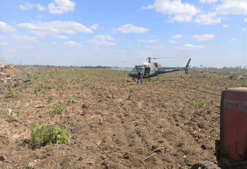 As equipes identificaram a propriedade durante o sobrevoo, e no local foi encontrada uma pessoa trabalhando, mas ela não possuía documentos e isso impossibilitou que as autoridades a qualificasse. O proprietário das terras não se encontrava no local. As coordenadas foram repassadas ao monitoramento dos órgãos ambientais para identificação do fazendeiro e verificação se há alguma licença para aquelas atividades. Casa não haja, poderá haver autuação.