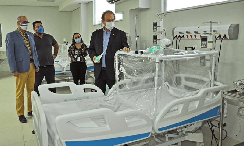 O Hospital Estadual de Combate à Covid-19, implantado em Palmas, deverá receber os primeiros pacientes nesta quinta-feira, 20 de agosto. A confirmação da data foi feita pelo governador do Estado do Tocantins, Mauro Carlesse, e pelo titular da pasta da Saúde Edgar Tollini, nesta segunda-feira, 17, durante vistoria à unidade, que conta com 60 leitos clínicos e 10 leitos de UTI, destinados exclusivamente ao tratamento das pessoas acometidas pelo novo Coronavírus.