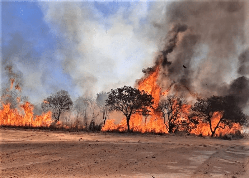 O terreno tomado pelo fogo é composto de vegetação nativa do cerrado, com muitas árvores, outras espécies vegetais, pequenos animais e pássaros. A grande quantidade de massa seca propiciou que as chamas se deslocassem com rapidez e chegassem a cerca de 10 metros de altura, formando uma nuvem de fumaça preta que podia ser vista a quilômetros de distância.