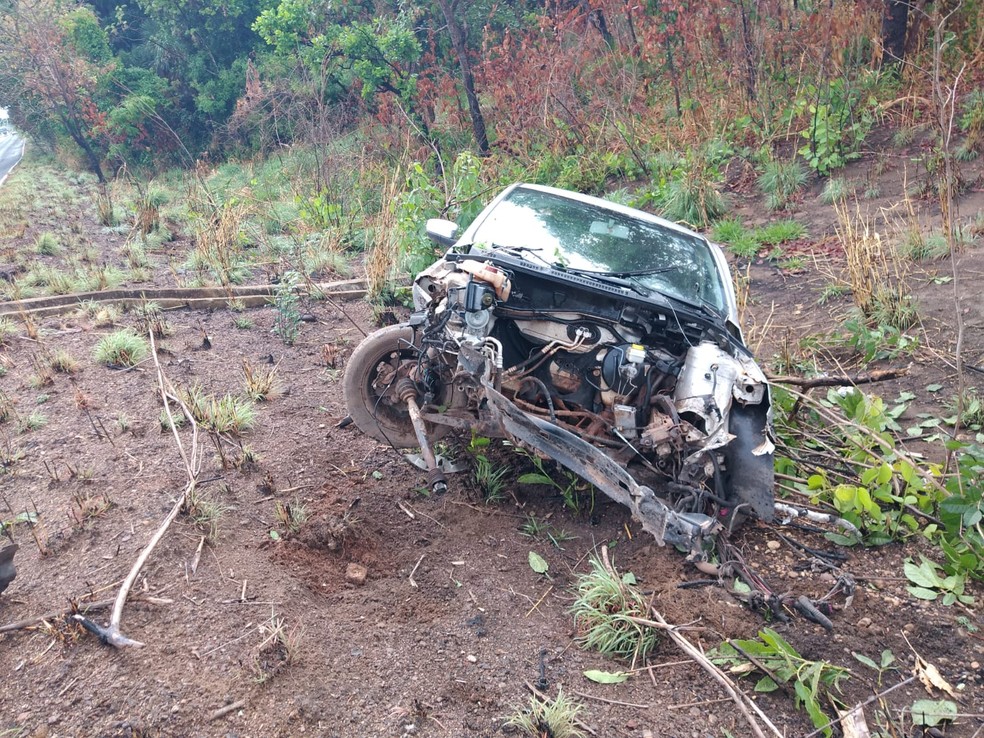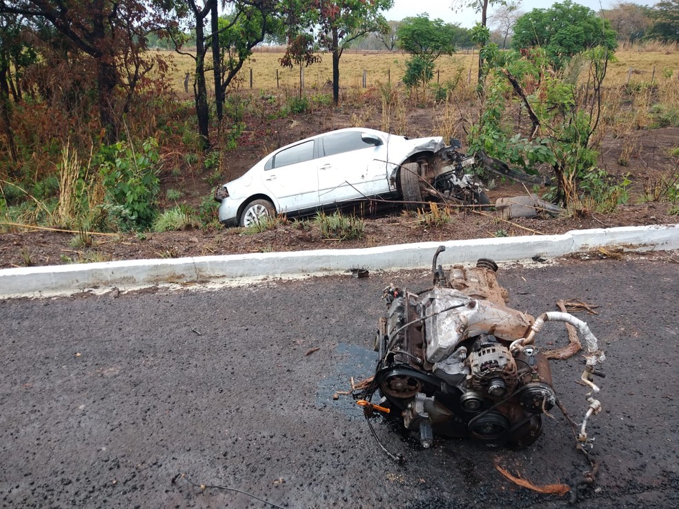 Imagens feitas no local mostram que o motor do carro foi arrancado após o impacto na árvore. Quando a corporação chegou encontrou peças do automóvel no meio da rodovia. O veículo ficou destruído.