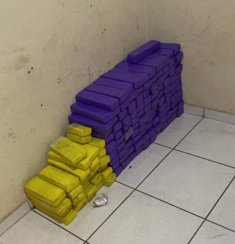 Ao chegar no local, os agentes localizaram escondidos no interior do imóvel dezenas de tabletes de maconha, perfazendo mais de 100 kg da droga, além de uma balança de precisão. Na ocasião, um homem de 27 anos e uma mulher de 21 que seriam os responsáveis pelo local e também integram a associação criminosa foram presos em flagrante por tráfico e associação para o tráfico de drogas.