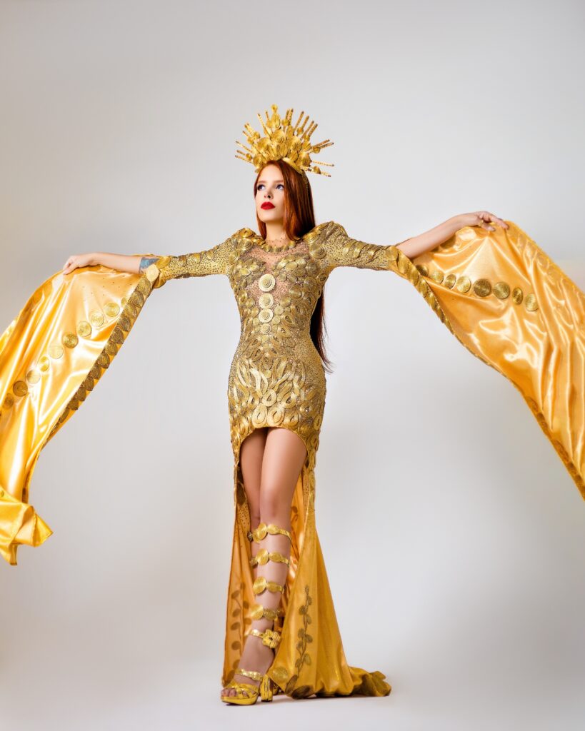 Sobre a produção do vestido da miss, Luiz Fernando conta que, após a ideia do croqui, iniciou uma pesquisa pelo capim dourado de melhor qualidade. “Em março foi dado início à confecção das 1.100 peças artesanais a partir do capim dourado. Um trabalho longo e árduo que contou com a ajuda de 21 artesãs locais. Ao todo foram necessárias 720 horas de trabalho intenso para montar um grande quebra cabeça que foi esse vestido”, frisa.
