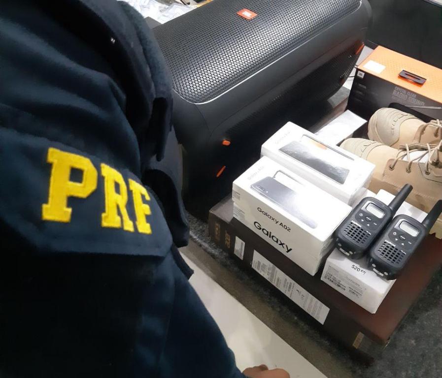 A Polícia Rodoviária Federal (PRF) apreendeu nesta quarta-feira, 04, cerca de 29 itens de mercadoria nacional e importada sendo transportados de forma irregular por um homem de 40 anos.