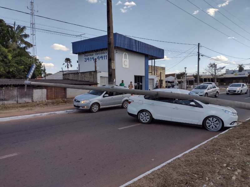 Um motorista perdeu o controle da direção e bateu em um poste, na avenida Filadélfia, em Araguaína, norte do estado, na tarde deste sábado (7). Com o impacto, a estrutura caiu em cima do veículo.