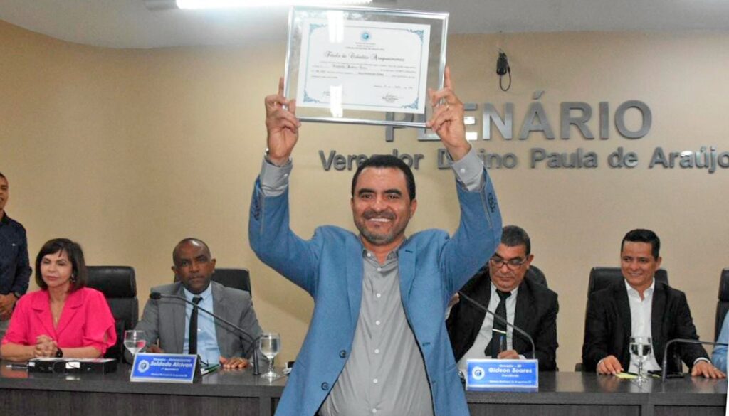 Em cerimônia realizada na Câmara de Vereadores de Araguaína, nesta terça-feira, 02, o governador e pré-candidato ao Governo do Tocantins, Wanderlei Barbosa, recebeu o título de cidadão araguainense. A honraria foi concedida pela vereadora Paula Zerbini (PTB).