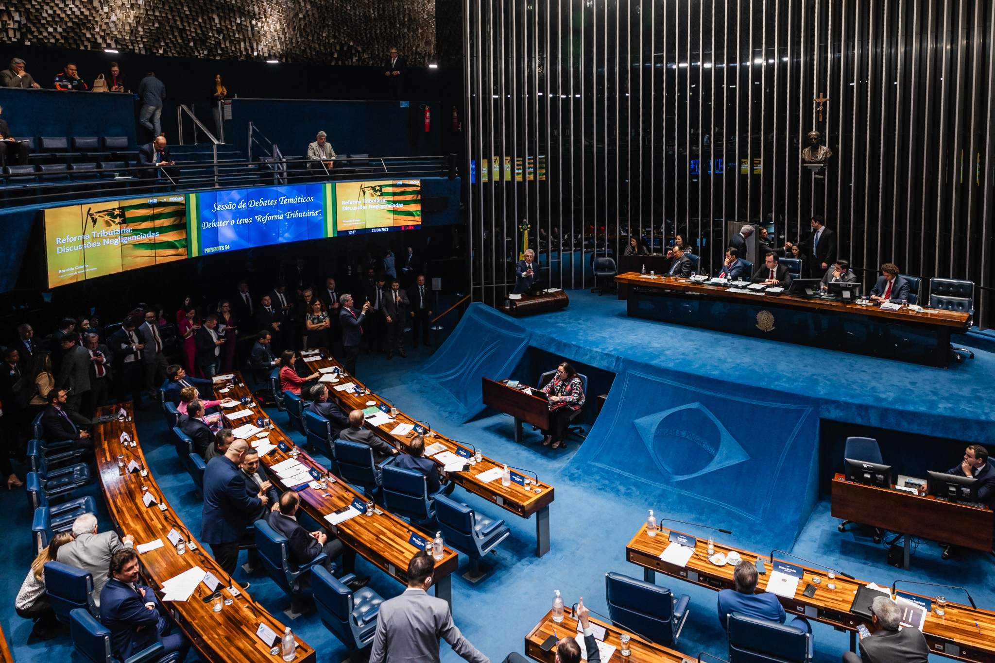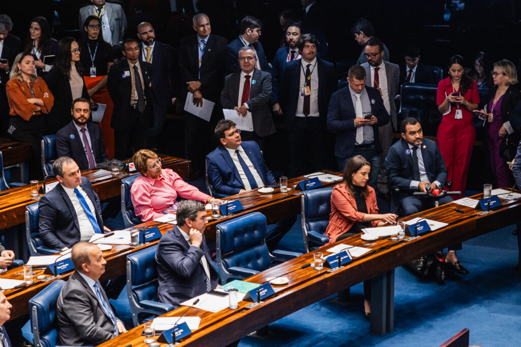Governadores participam, nesta terça-feira (29), de debate sobre a reforma tributária no plenário do Senado Federal. O texto tramita na Comissão de Constituição e Justiça (CCJ) da casa.